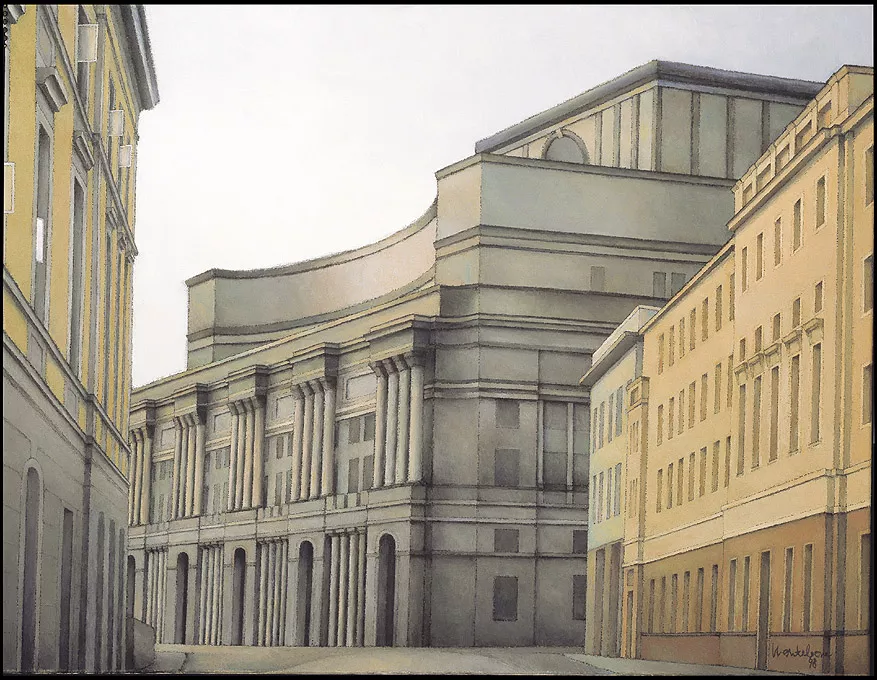 Warsaw : the Grand Theatre seen from Trebacka Street Oil on canvas 65 x 85 cm 1998 Private collection